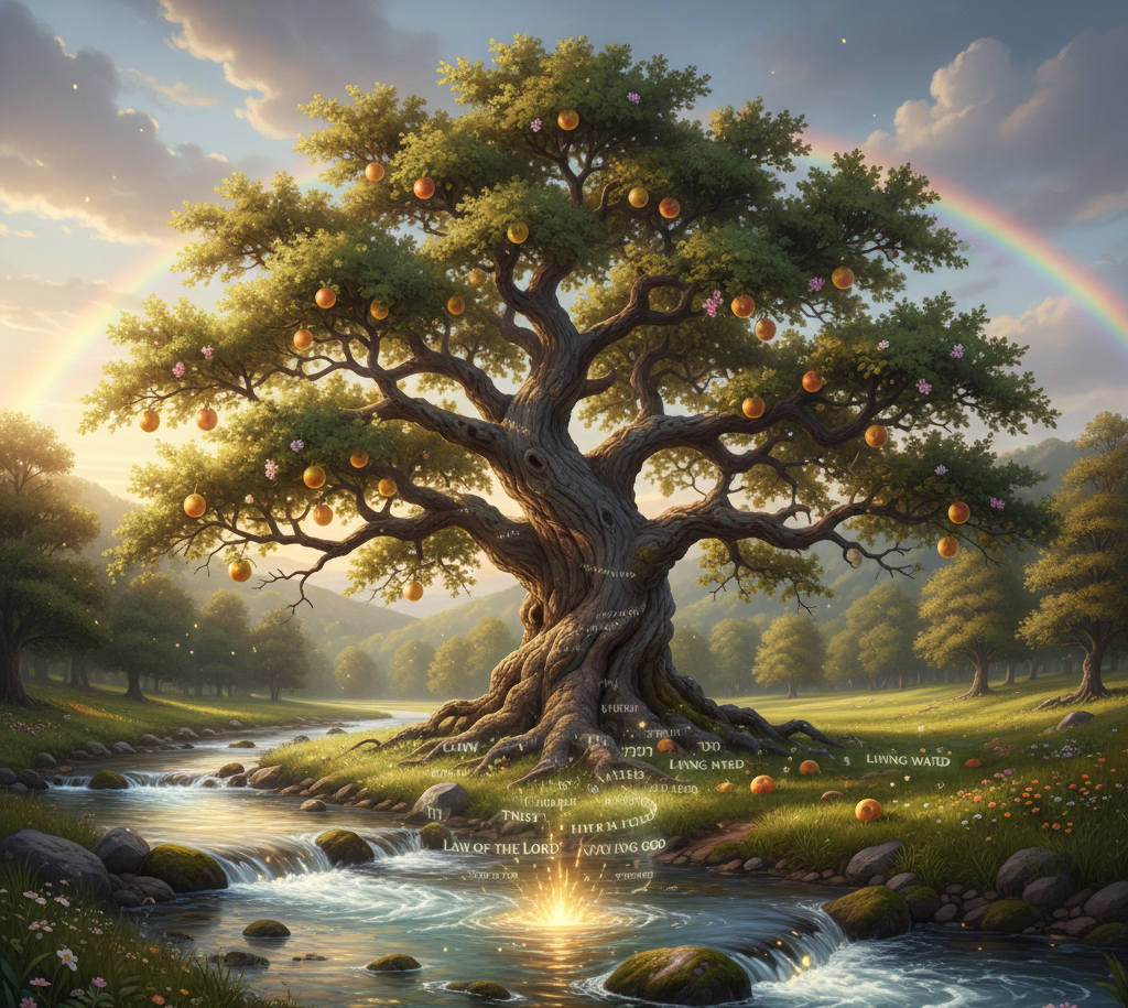 2. A lei como solo de nutrição. A “terra”, onde essa árvore é plantada, é a Lei do Senhor. Ela fornece os nutrientes espirituais para o crescimento. A Lei não é um fardo, mas uma expressão da vontade de Deus, o fundamento que sustenta a vida justa.